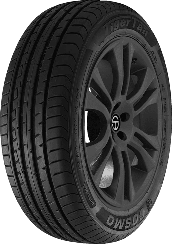 Cosmo's TigerTail is an all-season tire that's designed for use on performance-oriented coupes and sedans. An asymmetric tread pattern allows for sporty traction and handling in wet and dry conditions, and the TigerTail's wide grooves drain water from the tread to reduce the risk of hydroplaning on wet roads.